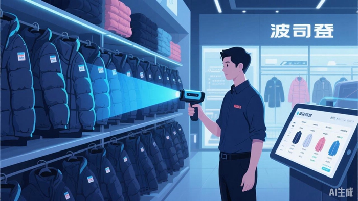 每件波司登衣服的吊牌中都内置了超高频RFID电子标签,标签内存储着商品的款号、尺码、颜色、生产批次等唯一标识信息。店员只需使用手持RFID读写器在货架前轻轻一扫,10秒内就能完成数十件服装的信息采集,盘点效率较传统方式提升了50倍以上。