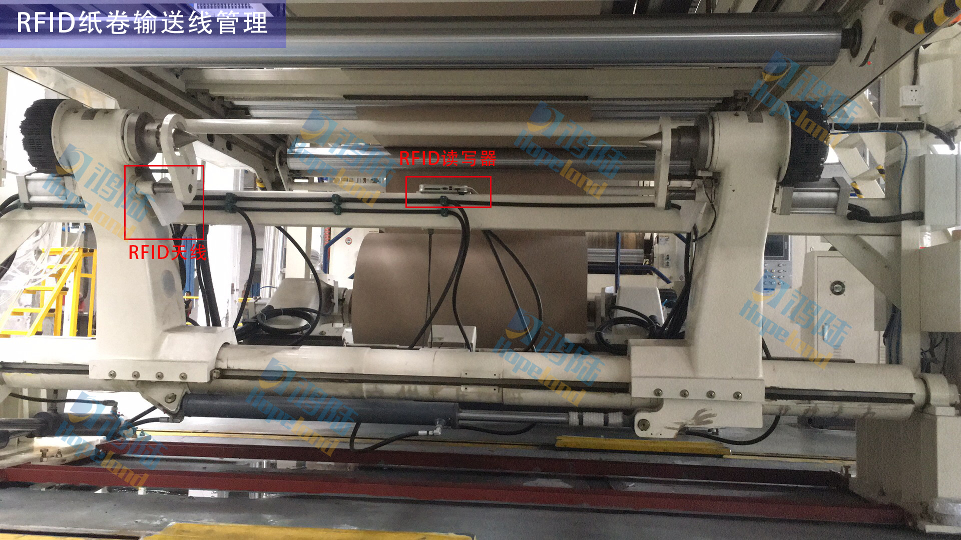 3、当纸卷到达对应纸架时,纸架上的鸿陆RFID读写器,可自动读取纸卷的相关信息,并全程监控记录纸卷的使用情况;